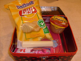 Turkey sandwich, applesauce, Baked Lays, and string cheese. The granola bar was a morning snack.