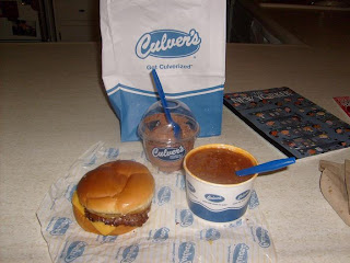 Butter burger with cheese and a bowl of chili. I put the custard (chocolate raspberry) in the freezer and ate it later, maybe around 10:00.