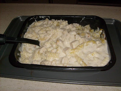 Stouffer's chicken alfredo. I got stuck in 4th of July traffic on the way home, so the drive (normally 4 hours) took almost 6. I was starving by the time I got home, and Jon -- good boyfriend that he is -- had dinner waiting.